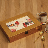Savor tranquility with the Blossom Tea Box. Delicate blooms and playful birds create a calming aura. Combine elegance and practicality—store and enjoy your teas with grace.