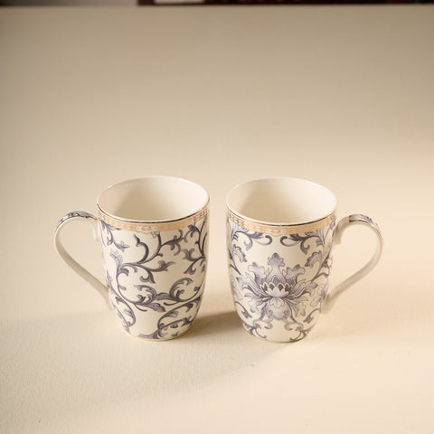 The set of two mugs is beautifully crafted in porcelain, reflecting artistry in every detail.