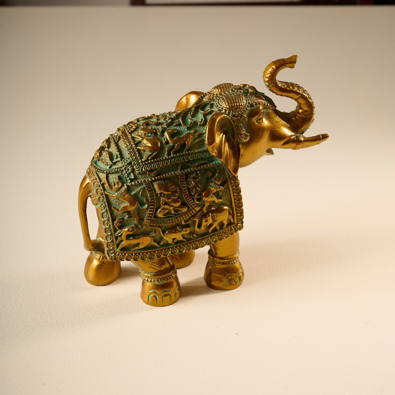 Elegant hamper featuring a beautifully sculpted resin Gajraj with a brass tealight holder.
