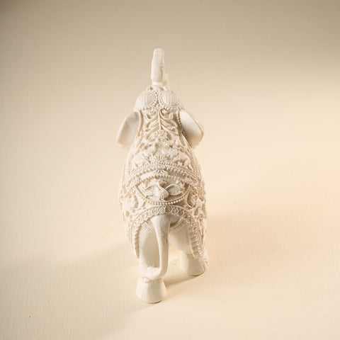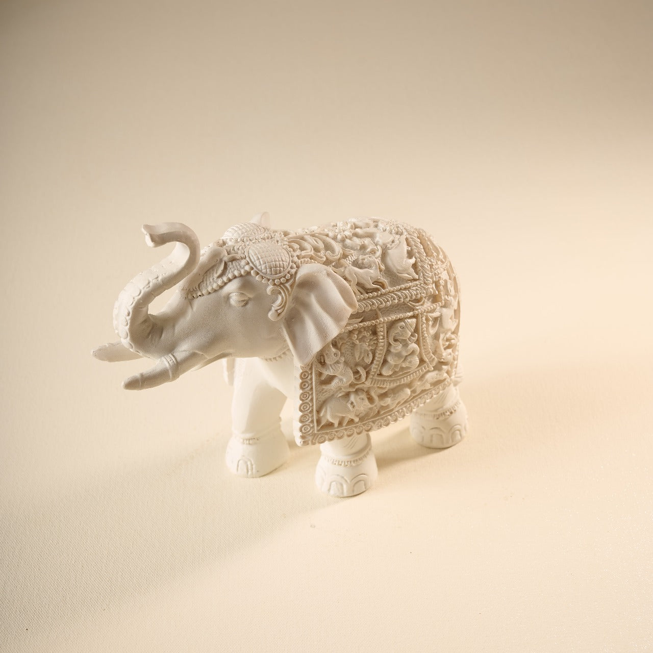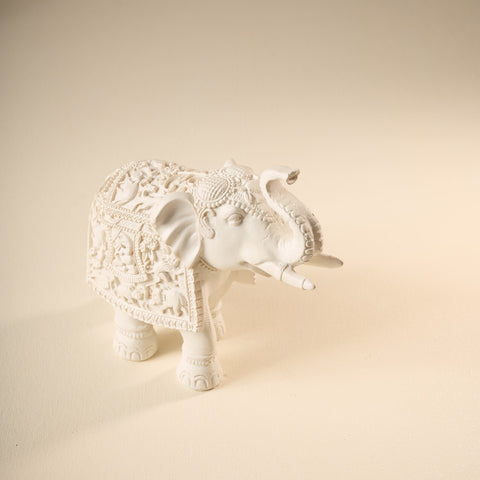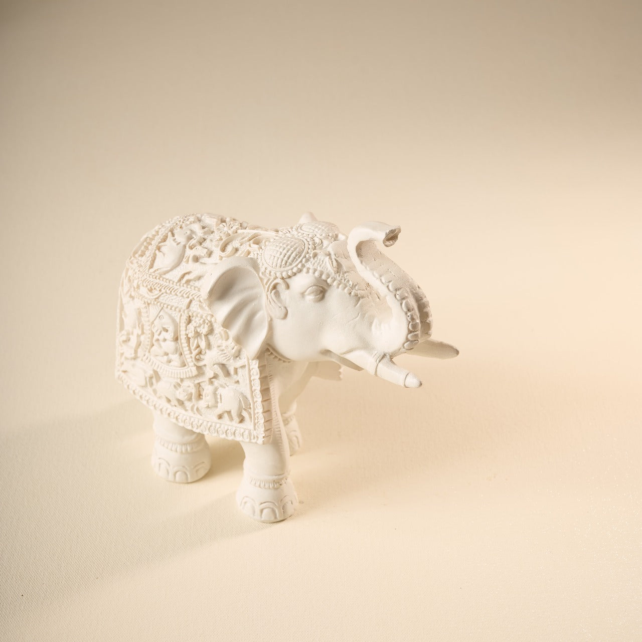 Featuring a majestic white resin Gajraj and a traditional brass tealight holder hamper.