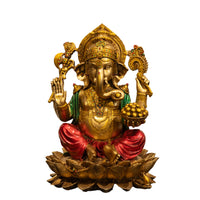 Crafted from high-quality polyresin, this idol is not only durable but also easy to maintain, ensuring that it retains its beauty over time. The use of rich colors and intricate designs reflects the artistic craftsmanship that goes into each piece, making it a perfect gift for festivals or special occasions. Whether used in a prayer area or as a decorative accent, the Ganeshji on Kamal idol embodies elegance and serenity, inviting positive energy into your surroundings.