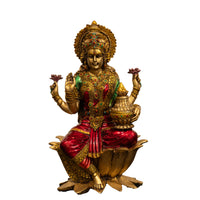 Elevate your spiritual decor with the Divya Collection's Laxmiji on Kamal idol, a breathtaking representation of the Goddess of Wealth and Prosperity. Skillfully crafted from durable polyresin, this idol showcases intricate details that bring the divine essence of Laxmi to life. Seated elegantly on a lotus flower, each curve and contour is designed with precision, reflecting the traditional artistry that honors the cultural heritage of India.