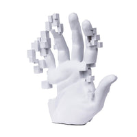 Elevate your interior space with the Modern Accent collections' Hand Sculpture (large), a striking piece that seamlessly blends art, symbolism, and innovation. Crafted in a sleek white finish, this sculpture features a human hand with abstract cube fragments extending from the fingers, evoking themes of digital transformation and creativity. Its bold, futuristic design makes it an eye-catching addition to modern homes, creative studios, or office interiors.