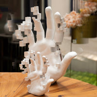 Introduce a touch of modern artistry to your space with the Hand Sculpture (Small), a minimalist piece inspired by the digital era. Cast in a clean white finish, this sculpture captures a human hand with its fingers partially abstracted into geometric cubes. The result is a stunning representation of transformation and imagination, perfect for small spaces that still crave character.