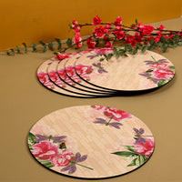 Size: 4" x 4"Material: MDF, VelvetSet Contents: 6 CoastersWash and Care: For Indoor use only. Wipe spills immediately. The product can't be washed but it is water-resistant. It can be cleaned with a damp cloth.