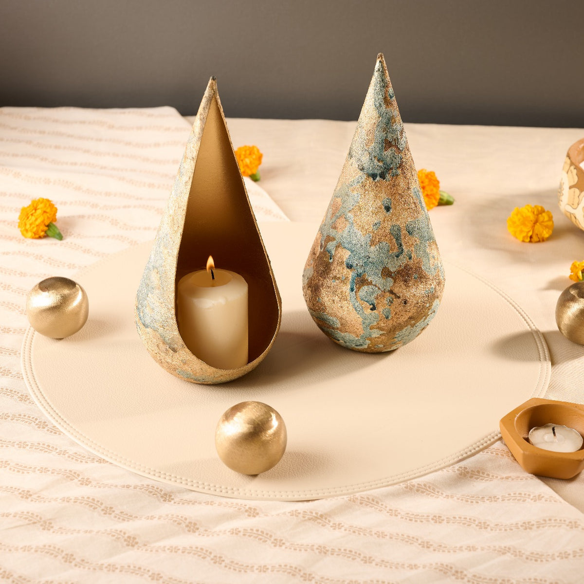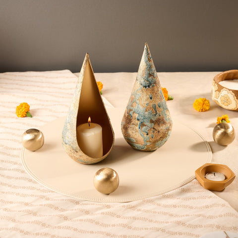 Crafted in elegant golden and blue shades, the Neeli Boond Candle holders add festive charm and radiant glow to any living space.